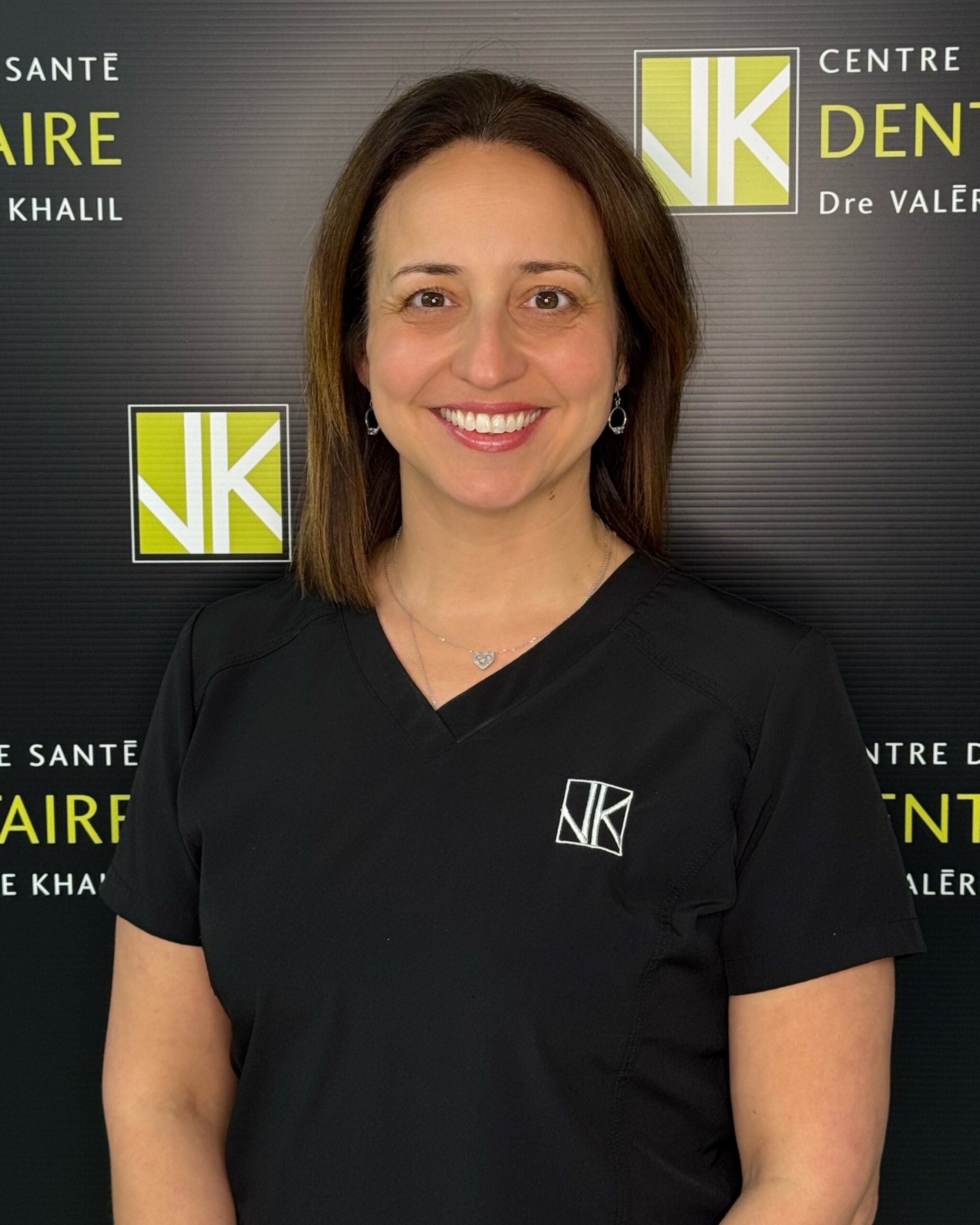 La Dre Valérie Khalil obtient son diplôme à l’Université Laval en 1999. Passionnée par son métier, elle est une dentiste qui aime toujours se perfectionner pour offrir le meilleur de la dentisterie à ses patients. Dès le secondaire, Valérie sait qu’elle veut devenir dentiste et aider les autres à retrouver la santé.